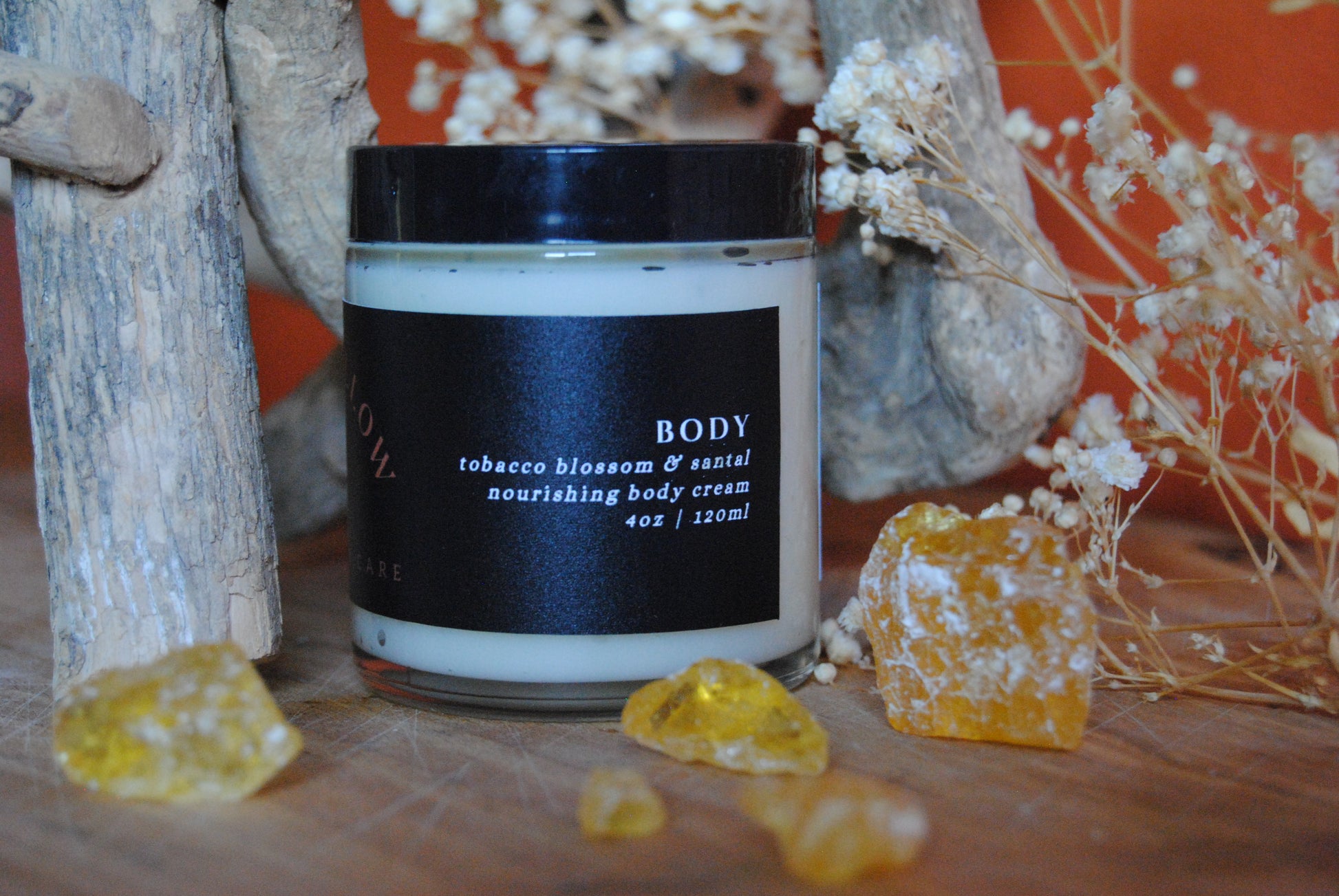 Our nourishing Tobacco Blossom & Santal tallow body cream will elevate your senses with creamy undertones of amber, leather, and musky wood while deeply nourishing, softening, and protecting your natural skin barrier. This is an absolutely delicious masculine smelling tallow body cream perfect for hardworking rough hands and skin ;)